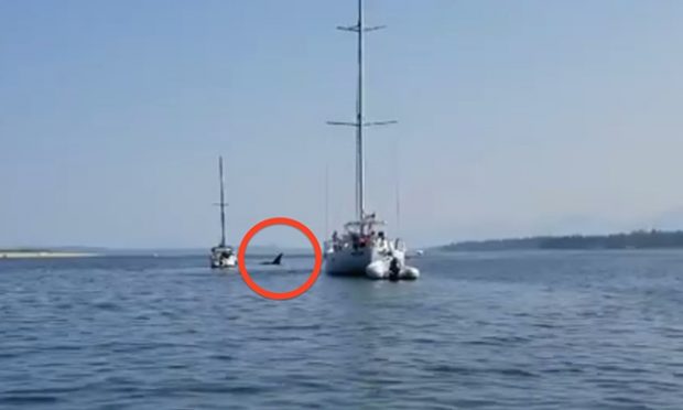 A seemingly playful or mischievous orca was caught on video Sunday pulling a sailboat across part of a British Columbia harbor via the vessel’s anchor line.