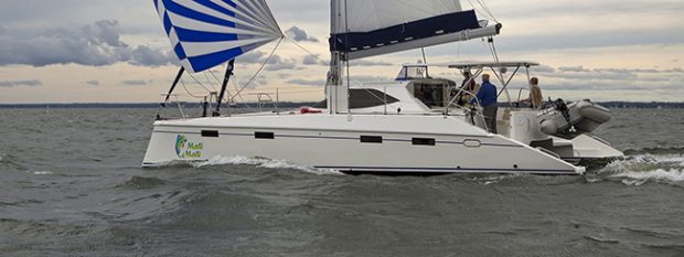 This Roger Hill and Phil Berman design is a thoroughly modern couple’s performance cruising boat. (Review from Multihulls Quarterly)
