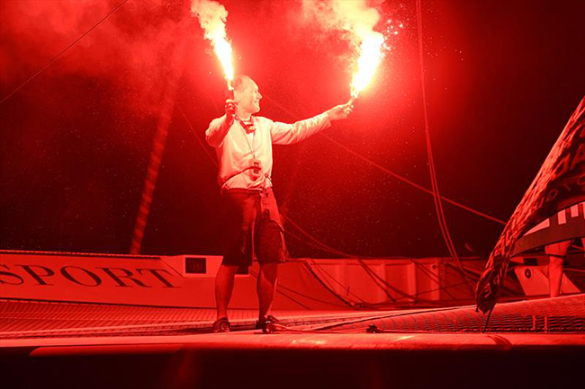 In the clammy heat and very light winds of the Caribbean night, Joyon, 62, glided across the finish line on IDEC Sport at 23:21.47 local time (03:21.47 UTC) to pip the poster boy of French sailing, François Gabart on MACIF by just seven minutes and eight seconds.