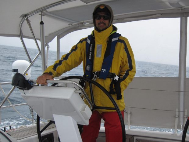 The thing that struck me was that that’s how I have always tied on the jacklines…on the stern cleat…so if I or crew were to fall toward the stern, we’d end up in the water just like my friend. Note to self: before heading offshore again, I need to install solid pad-eyes for the jacklines on both side decks close to the cockpit but far enough from the stern so a falling crew will fall on deck instead of into the water.