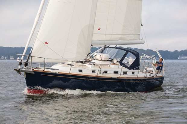 We met up early and were the first customers at the fuel dock. The 395 is a very manageable size for two people. It maneuvers well under power and is light enough to manhandle around tight slips and docks. We topped up the fuel and as we did we were watching the flags around the creek and the tops of the tall pine trees for a sign of wind. It was there, so we revved up the 40-horse power diesel, which was turning a folding prop on the sail-drive, and slipped smoothly out into open water. Read More