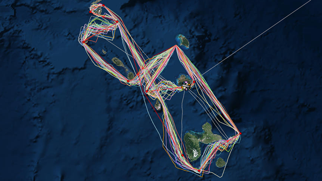 The amazing image above, which looks like colorful yarn wrapped artfully around the islands of the Eastern Caribbean in a giant Christo installation, is in fact the tracking history of the 61 boats that are sailing this week in the Caribbean 600 offshore race. The boats all are carrying Yellow Brick transponders that transmit positions, course and speed for all the boats all the time via a satellite miles in the sky above. For race organizers, tracking systems like this are a key safety feature. For those of us not sailing, it allows us to watch an offshore race as the action unfolds.