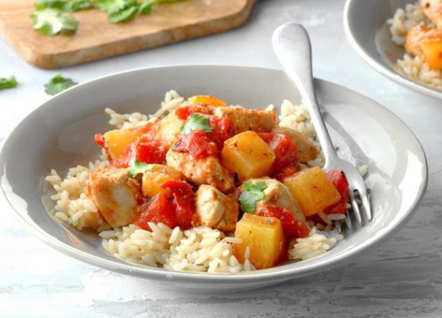This chicken recipe from Taste of Home has just a few easy to find ingredients and takes just 20 minutes from start to finish. With chicken, fire roasted tomatoes and pineapple over a bed of rice you have a great, easy and colorful meal. https://www.tasteofhome.com/recipes/easy-caribbean-chicken/