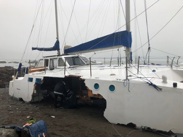 (Lost Cove Outpost) – The crew of a 45-foot trimaran named Midnight Sun had to abandon ship in treacherous waters last night after striking some rocks near Shelter Cove. “We (firefighters) didn’t expect to find them because it was really terrible weather,” Antony said. “It was raining like a monsoon, it was dark and it was foggy.”