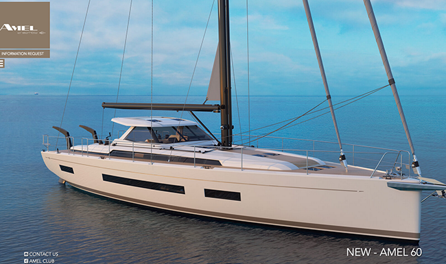 September 2019 will be the debut of the Amel 60, another in the line of luxurious, offshore cruising boats from the French boatbuilding company. A step up from her sistership, the Amel 50, this boat will have a carbon in-mast furling sloop rig and twin rudders. There is a half-open helm station in the middle cockpit with the Amel hardtop protecting you from the weather. With a generous beam there is a lot of living space below. Read More