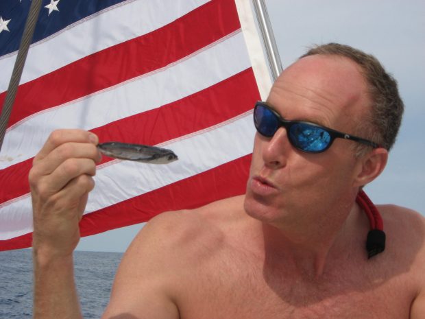 Whenever we are going somewhere in open water on our boat we always have a fishing line trolling off the stern. We’re fish eaters so foraging in this easy way makes a lot of sense. And after catching hundreds of fish over the year, we’re getting a little fussy about what we keep and what we throw back. Our favorites are mahi mahi and Spanish mackerel, which both fillet easily, are not too bloody or oily tasting, and freeze well. Mahi mahi is one of the most beautiful fish in the sea and it is always slightly sad to watch their brilliant yellow and blue markings fade as they die for our benefit. Fish we tend to throw back are smaller tuna, jack, skipjack and anything that looks like a barracuda. In summer, we occasionally will hook a bass in our home waters and count ourselves lucky; bass is good eating and tastes great when smoked in a smoker.  The biggest fish we ever caught was on a passage from Virginia to the BVI with Tim Robinson aboard his Hylas 54 Thumbs Up. In the horse latitudes we hook a magnificent yellow fin tuna that weighed north of 100 pounds. It took us half a day to clean it and cut away the steaks. And, then we ate prime tuna in every imaginable way for the next four days – grilled, shish kabobs, ceviche, sashimi, cold in a salad, raw, you name it. It’s always a pleasure to catch a fish, particularly if you are lucky enough to hook a delicious one.
