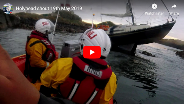 (Sailing Today) – Holyhead RNLI volunteers were called about a yacht that had gone aground on the rocky island of The Skerries, approximately two miles from the coast at Carmel Head, Anglesey.