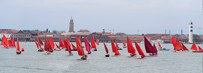 From Designboom comes this story of artist Melissa Mcgill’s public art project in Venice, Italy. Honoring the maritime history of the area as well as calling attention to the forces of climate change and mass tourism on the city, she has 50 traditional Venetian sailboats along the city’s lagoon and waterways. The art installation includes a number of regattas of the red sailboats. Read More