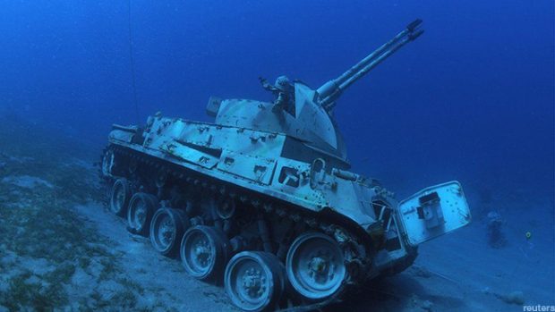 (BBC) – Looking for a museum that is a bit different than most? Off the coast of Aqaba, Jordan the kingdom has created an underwater museum of military vehicles, stationed at a coral reef in the Red Sea. The museum is open to divers, snorkelers and tourists in glass-bottomed boats. Read More