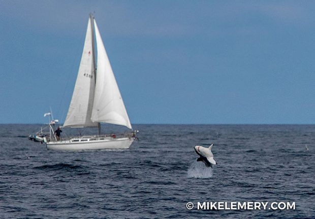 Mike Lemery, a wildlife filmmaker and photographer was on Cape Cod along with his fiance when he heard a woman scream for people to get out of the water. Lemery was able to grab his camera and capture this amazing shot of a great white jumping out of the water in front of a sailboat. On his blog he has a number of fascinating images. Read More