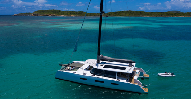 The new Kinetic 62 performance cruising catamaran that had its debut at the Annapolis sailboat show last week was certainly one of the stars of the show. The new South African-built cat, designed by Simonis Voogd, embodies a very artful blend of sailing performance and cruising comfort. The hulls, deck and rig are all infused carbon laminates which make the boat very light and extremely stiff. There is no question that the 62 has 20 knots of boat speed in the right conditions and a happy cruising speed in the mid-teens. The first thing you notice when you enter the saloon is the huge size of the wrap-around windows and the amazing 360-degree views. The helm is in the forward part of the saloon and sheets and halyards lead to winches in the forward cockpit, similar to Chris White designs and first-generation Gunboats. The galley is huge and will make gourmet chefs drool. The 62 can have either a four-cabin or three-cabin layout in the hulls. Check out the Kinetic website for more information and photos.