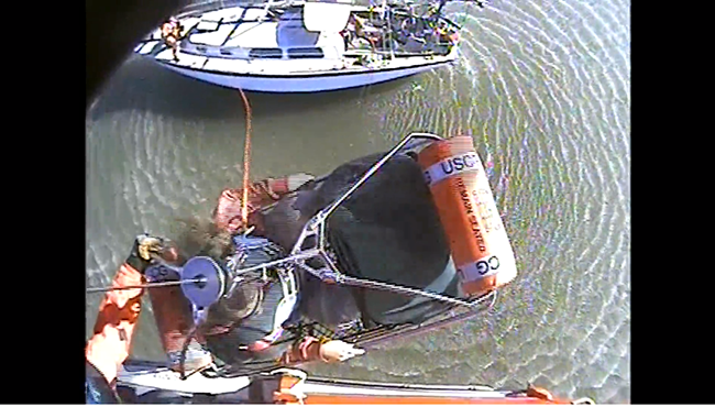 (San Francisco, CBS Local) – The San Franciso Coast Guard were contacted by three sailors who were stranded near Seal Islands as their boat had run aground. Coast Guard crew of a MH-65 Dolphin helicopter were able to successfully rescue three sailors and two dogs from the vessel. Watch Video