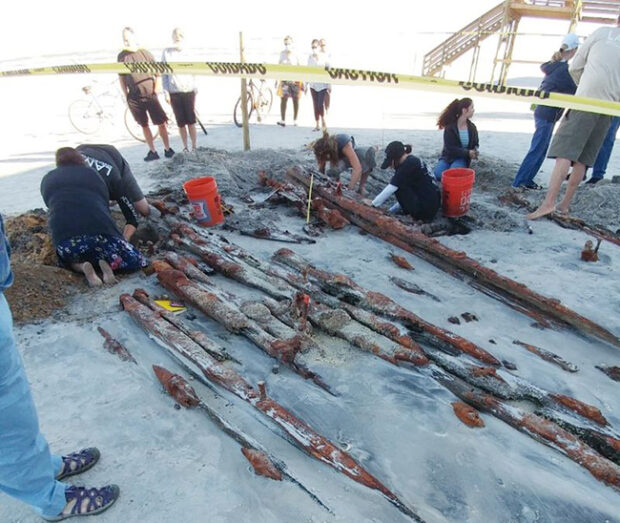 (NY Daily News)  – Walking along Crescent Beach in St. Augustine, FL a beachgoer discovered wreckage of the Caroline Eddy, an American merchant ship from August, 1880. Researchers believe the wreckage was preserved by sand over time, but erosion had lowered the amount of sand until completely uncovered by the recent tropical storm Eta. Read More