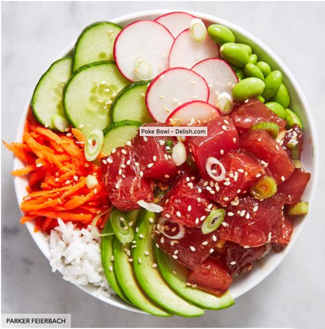 A poke bowl is a great way to present marinated fish, most often tuna, in a rice bowl with a variety of vegetables. This recipe from Delish calls for cucumber, avocado, edamame, carrots and radishes. Read More