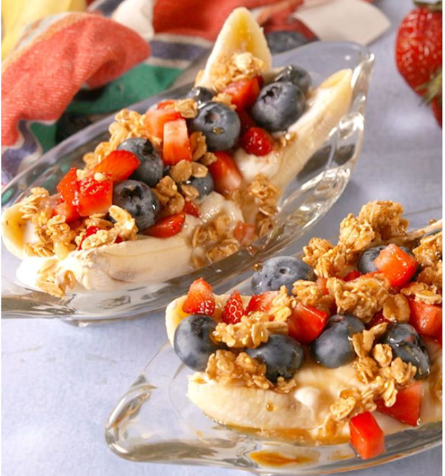 Here is a really simple recipe from Delish, ostensibly for children but is fun for everyone. Split a banana length-wise and fill with your favorite yogurt, granola and berries. This makes a great breakfast and adds a bit of jazz and fun. Read More