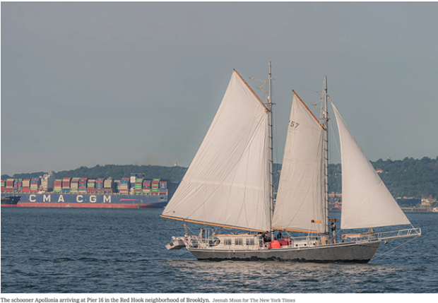 (scenichudson.org) – A pilot program is attempting to have carbon neutral shipping on the Hudson River in New York. Sam Merrett has restored a 64-foot steel schooner, Apollonia to make cargo runs to New York City from upriver. The vessel relies on sail with a backup diesel engine that runs on vegetable oil. Goods such as hard cider, maple syrup, Christmas trees and bluestone are being carried onboard. Read More