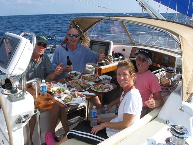 Every fall, as we watch our friends who have joined the Salty Dawg Rally to the Caribbean get their boats and themselves ready for the challenging passage, I’m reminded of the last minute essentials that go in the passage plan. I’ll assume, hopefully, that all skippers have made their boats absolutely seaworthy and equipped with all the spare parts, tools and manuals needed to repair anything that breaks; and, I’ll assume that the boat has all of the safety gear needed for any emergency and the redundant communications systems needed to signal an emergency, get daily weather forecasts and keep those on shore up-to-date on your progress. So, what essentials often are left to the last minute before a long ocean passage? Water, food and fuel. Drinking water: even if you have a watermaker, you need to carry enough water in tanks and bottles for every crewmember to have at least half a gallon per day for at least twice the number of days anticipated. Food: You need to carry enough breakfasts, lunch fixings, snacks and dinners for at least 50% more days at sea than anticipated, plus a generous store of canned, freeze dried and bottled spare supplies. Cooking Fuel: Enough to last at least 50% more days at sea than planned. Diesel fuel: You should have made a fuel consumption chart for your particular boat so you know how far you can motor at low, medium and high rpms, plus you need to carry enough fuel to motor at least 30% of your anticipated distance, or a minimum of 500 miles. In some equatorial regions, such as Panama to the Galapagos or Bali to Singapore, you need enough fuel to motor 1,000 miles. So, when you see skippers and crews scurrying busily in the days before a weather window opens, these last-minute essentials should be the main things on their lists.