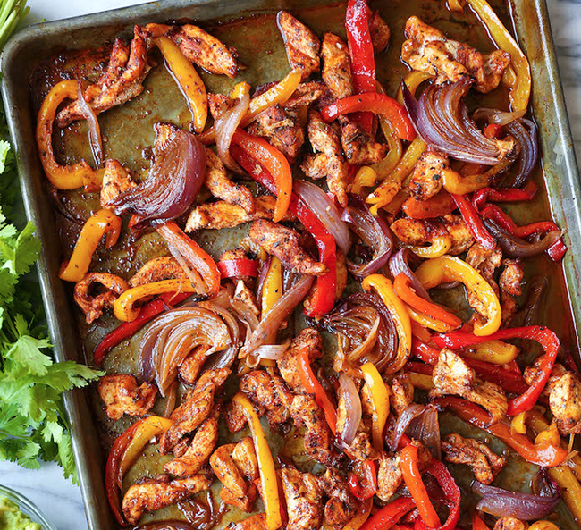 Here is a recipe for those who like to make a quick meal with little clean-up, and that tastes great. This dish from damndelicious.net uses one bowl and one sheet pan to make flavorful chicken fajitas. Spices including chili powder, cumin, oregano and paprika are mixed with chicken, peppers and onion and baked for under 1/2 hour. Enjoy with tortillas. Read More