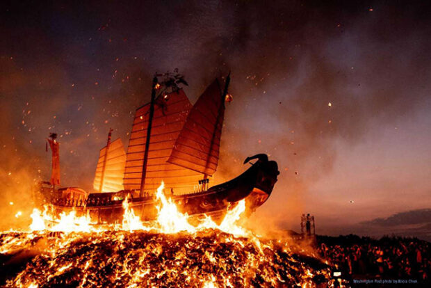 (greenwichtime.com) – A Wang Ye festival in Donggang, Taiwan focuses on getting rid of disease and evil while celebrating guardian deities. The dieties have been protecting Taiwan for decades and traditionally they burn a large wooden ship every three years which helps to take the evil back to heaven. This year they hope it will stem the pandemic. Read More