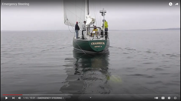 When we were preparing our 45-foot sloop for the passage south from New England to the Caribbean, we went over all of her systems, rigging, sails, electronics and machinery with a fine-tooth comb and assembled spares for each category that would enable us to make all kinds of repairs at sea. As Capt. Ron famously said, “If it’s gonna happen, Kitty, it’s gonna happen out there.” Our boat, like most modern production boats, had a large spade rudder and we were of the opinion that this was her most vulnerable spot, and knew there was little we could do to protect it from the forces of huge waves, a whale or a large, half-submerged object. We carried spare cables, doubled up the lashings on the sheaves and reinforced the autopilot’s ram brackets. But the rudder itself was exposed, unlike rudders on boat with full keels or those with skeg-hung rudders. If the rudder post got seriously bent in a collision, we were probably screwed and would have to call for help. But, if we lost the rudder entirely or even broke most of it off, then we planned to make the boat watertight and then rig an auxiliary steering system. One reason to have a windvane with an auxiliary rudder is that you then have a built-in spare for just such an emergency. But we didn’t have one. So, plan B was to rig a bridle from docking lines that would tow a bunch of coiled line about 30 feet behind it. The bridle could steer the boat by trimming one side or the other with the cockpit winches. Luckily, we never have had to put this rig to a test and have never had an incident with the rudder. But, we think we were more or less ready if we had to go to plan B. Professional sailor Mike Keyworth has explored this issue in depth and has developed a spare steering system that really works. He published the video of his sea trials on YouTube several years ago and has now partnered with the Storm Trysail Club to create an excellent tutorial on how to steer your boat without an operating rudder. The club has generously made the video available to the public. If you are planning to sail offshore, whether you have a spade rudder, twin rudders or a skeg-hung or keel-hung rudder, take a few minutes to watch the video. You will learn a lot.