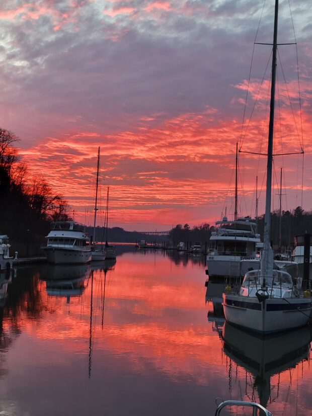 Amy Barbu sent in this dramatic sunset from the marina in the C&D Canal, Deleware.