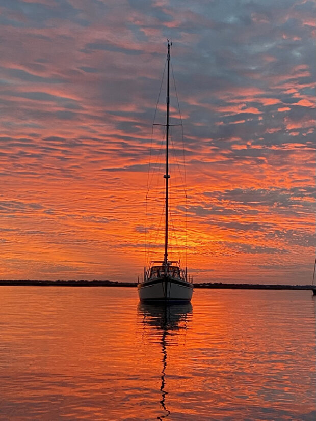 Bob and Linda Boynton sent in this lovely sunset shot of their boat in Fernandina Beach, FL