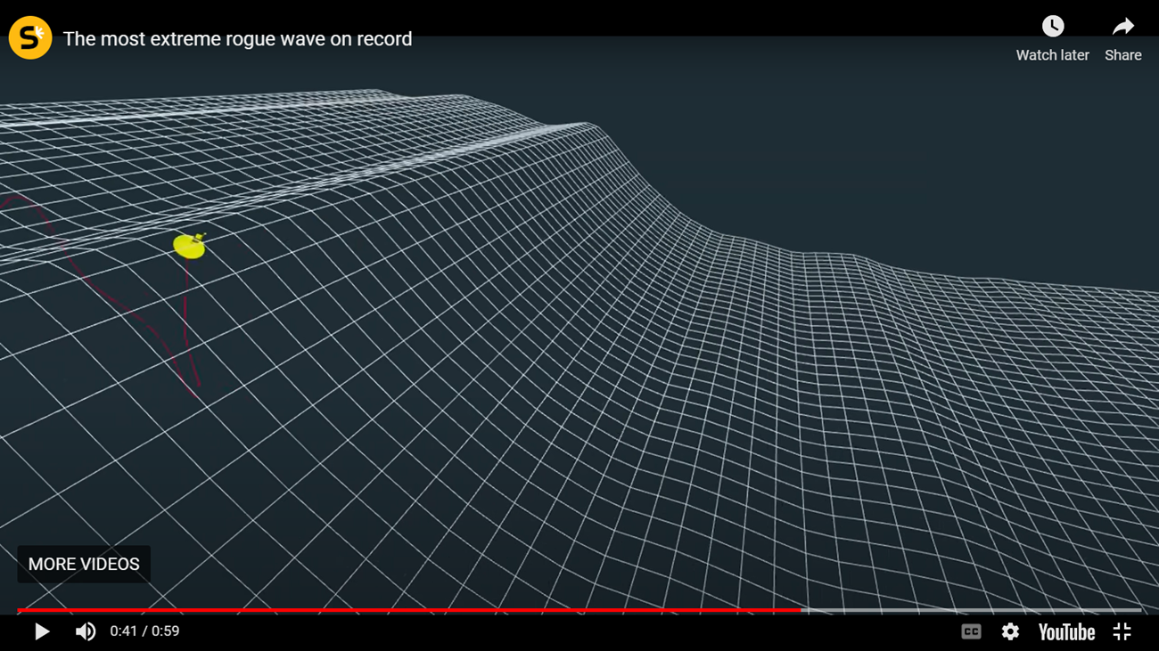 (Scientalert.com) In November of 2020, a freak wave came out of the blue, lifting a lonesome buoy off the coast of British Columbia 17.6 meters high (58 feet). The four-story wall of water has now been confirmed as the most extreme rogue wave ever recorded. Such an exceptional event is thought to occur only once every 1,300 years. And unless the buoy had been taken for a ride, we might never have known it even happened. Read more.