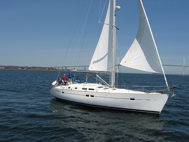 I have to admit that I have sailed all my life and have put in many tens of thousands of miles offshore and coastwise, yet I have never had to heave to by necessity. But, I have hove to many times in differing circumstances. When making a landfall at night on a coast with no lighted buoys or lighthouses and questionable chart accuracy – South Pacific, Indonesia, Red Sea for example— we’ll routinely heave to until daylight so we can eyeball our way into harbor. Or, if we are heading toward a crossing of the Gulf Stream or any major ocean current and are faced with adverse wind-against-current weather, we’ll slow down and heave to await a more favorable forecast and sea states. And, if we need to work on sail repair, engine repair or we have a sick and uncomfortable crewmember, we’ll take a time out and heave to. If you have never hove to, you might be surprised at the calming effect it has on both ship and crew. Modern sloops, with overlapping headsails and light displacements, don’t heave to easily. You need to reduce the mainsail to a scrap and back the two-thirds-rolled-up headsail by tacking without releasing the genoa sheet. But, if the sheet leads outside the side stays and cap shroud, it will chafe through in hours, so you may need to lead a second sheet inside the stays and through the genoa sheet car. Heaving to is a useful skill and should be practiced in varying wind and sea conditions before you really get the hang of it for your particular boat and rig.
