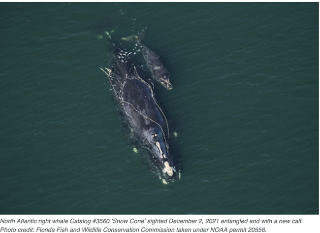 (NOAA FIsheries) – Recent research reveals that smaller female North Atlantic right whales produce fewer calves. Their body size has been declining in recent decades due to increased entanglements in fishing gear and other factors.