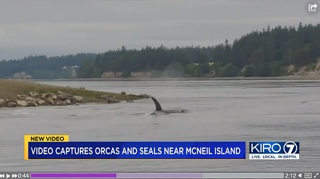 (kiro7.com) – Video taken early Saturday morning shows several large orcas close to the shoreline off McNeil Island.