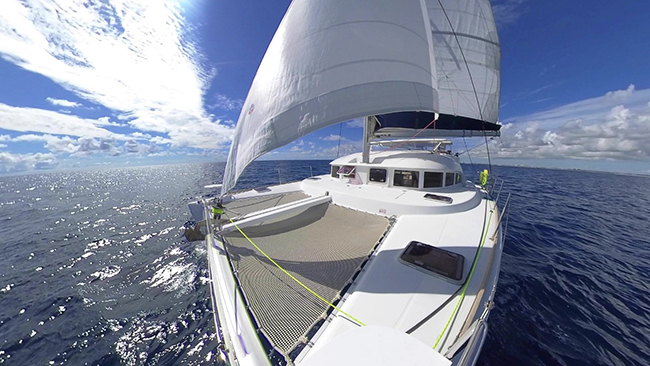 Randy Strunk took this fisheye photo of his Lagoon 380 on the way to Spanish Wells in the Bahamas