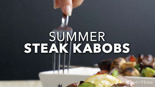 (tasteofhome.com) – Summer is a great time for grilling and this marinade is perfect for not only steaks, but chicken and pork as well. Marinate steak cubes for about 8 hours in a soy sauce, honey, vinegar, ginger and garlic mix and then grill with your choice of vegetables. Read More and Watch Video
