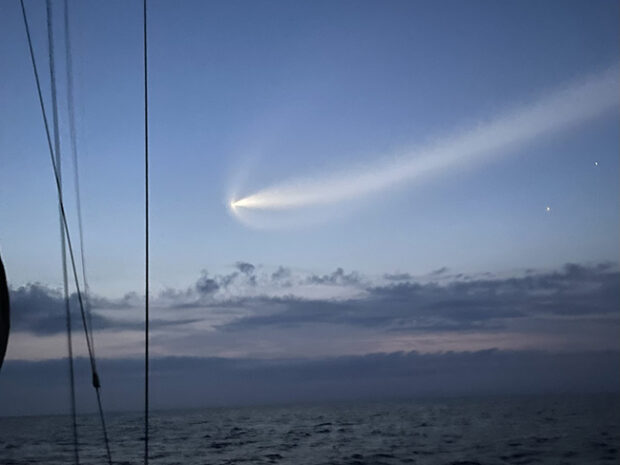 Chris Glubka took this photo of singlehander Olivia Wyatt’s Panda 40 anchored off Natadalo Bay, Fiji