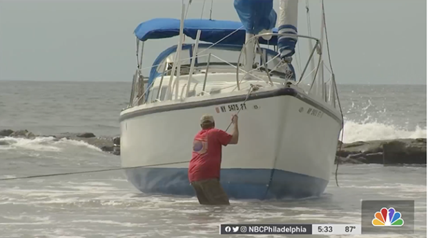 (nbcphiladelphia.com) – A sailboat running on autopilot became stranded on a Jersey Shore beach Monday morning after its captain had to step away to use the bathroom.