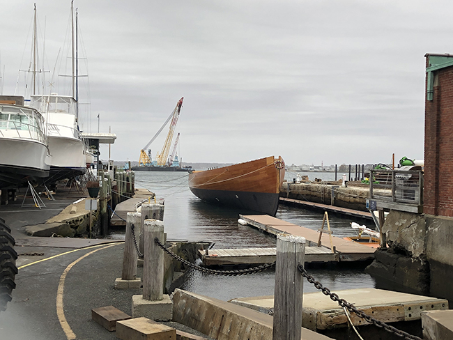 Coronet, a schooner built in1885 splashed into the water last week and after a few days of swelling up she will be on her way from Newport, RI to Mystic Seaport, Mystic, CT for a three year restoration. Since 1995 she had been in Newport at IYRS providing hands on experience to students at the marine trades school.
