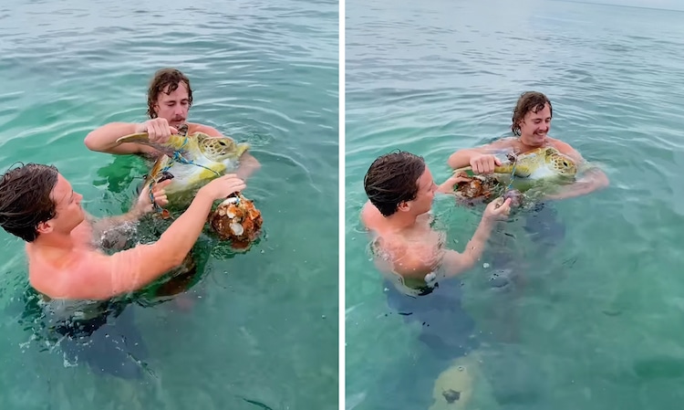 (mymodernmet.com) – Friends were out for a sail when they came across a sea turtle which had its fin wrapped in a twisted crab pot. Nick Fry jumped in the water along with a friend and managed to free the turtle from the trash. The sailors brought the pot back with them to dispose of properly reminding people to keep their trash from the sea. Read more.