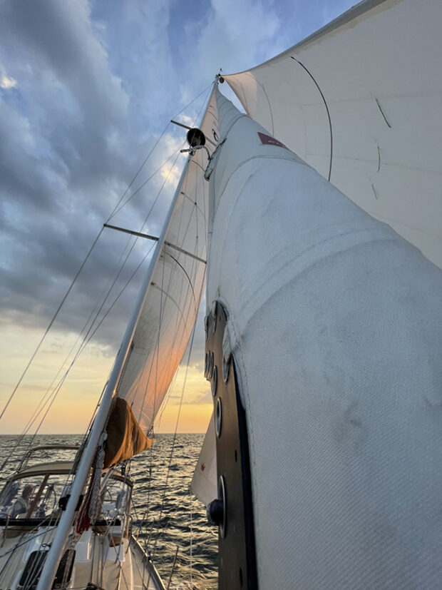 All sails set and enjoying a perfect day on the water.