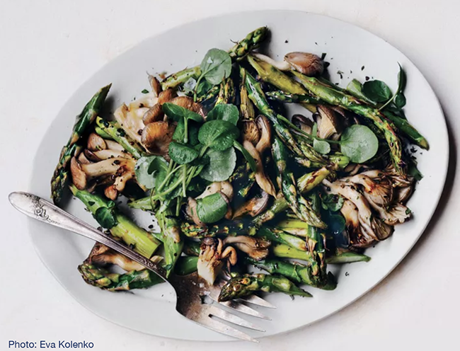 Everything tastes better with asparagus and this recipe from foodandwine.com certainly qualifies as great tasting. Roast asparagus and mushrooms in olive oil and a bit of balsamic vinegar. Toss in some butter and thyme leaves along with watercress or arugula for a simple yet elegant dish. Read more.