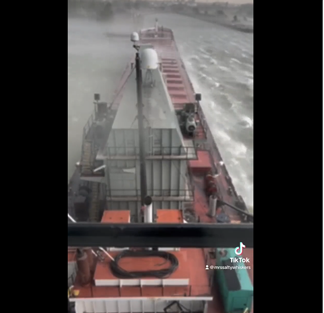 (maritime-executive.com) – The midwest has been experiencing a number of tornados recently and a crewmember aboard the tug Victory moving the barge Maumee captured the moment when a tornado clocking at least 148 mph passed over the vessels. Watch video