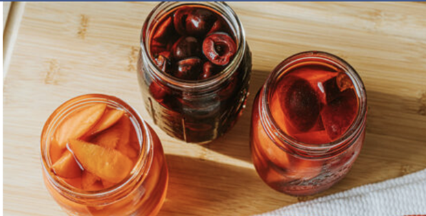All it takes to pickle the fruit is apple cider vinegar, sugar, salt, cloves and peppercorns. The longer the brined fruit sits in the refrigerator, the stronger they taste. Read more.