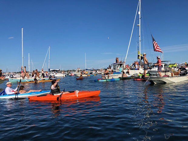 The Newport Folk Festival this past weekend in Newport, RI was sold out for those attending on land. That’s about 10,000 tickets. It felt about the same number of people out enjoying the music anchored all around the entrance to Newport Harbor.