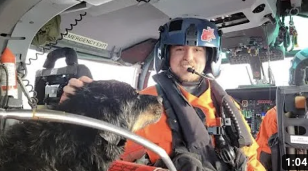 On the rocky west coast of British Columbia’s Vancouver Island, the lucky sailor and his lucky two dawgs were rescued after his sail lost power and was blown onto the rocks. He was able to get himself and his two furry crew off the boat and then made the call to the Canadian Coast Guard. The good dogs and a weary skipper were airlifted by helicopter to safety. Watch the recuse video here.