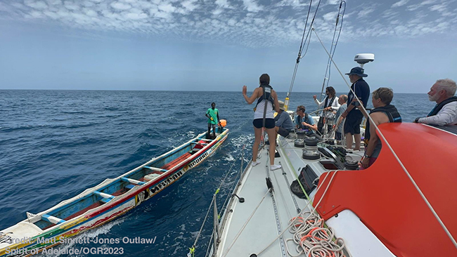 Race boat, Outlaw AU, a Baltic 55 with 11 crew onboard participating in the Ocean Globe Race contacted race headquarters that they had come in contact with a single mariner adrift in a 20-foot canoe some 90 nm off the coast of Dakar. He had no water and no radio or sign of fishing gear. The captain of Outlaw, Campbell Mackie, took him in tow and proceeded towards Dakar. They were taking precautions because they had security concerns and there was no reason for the vessel to be so far offshore. Read more.