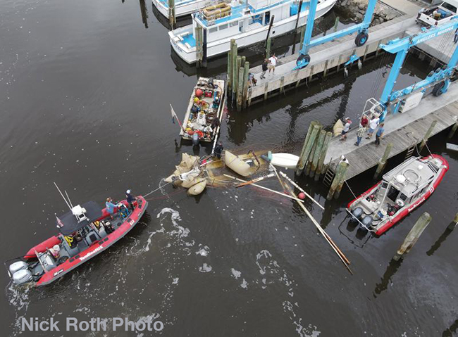 (Cape Gazette) – Late September a crew of four were onboard a 52-foot sailboat in the middle of the Lewes-Rehoboth Canal when they were struck by another vessel. Coast Guard Cape May Station had a 45-foot response boat nearby and they were able to rescue the crew while a Tow Boat US crew began towing the sailboat towards Angler’s Marina in Lewes, DE. As they neared the marina the sailboat rolled over and sank. Last week they were able to raise the boat enough using air-filled bladders to tow the boat to the marina. Read more.