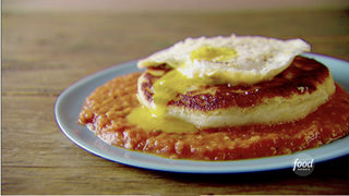 Here is a quick and easy meal you can make for breakfast, lunch or dinner. If you have left over mashed potatoes from Thanksgiving, this recipe from foodnetwork.com will help clear out your fridge. Mix eggs with flour and mashed potatoes making a pancake. Fry the pancakes and place a fried egg on top along with marinara sauce. Read more and watch video.