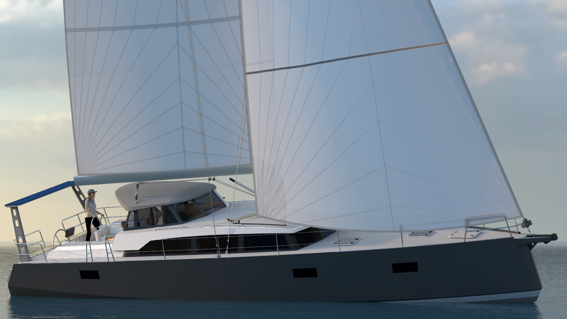 Like her sisterships, the 490 has a swing keel that provides 10-feet of draft when deployed and a mere 39 inches when raised. Twin rudders set well aft will make steering the 490 a sports-car-like experience and will allow the boat to dry out and sit on its own feet without a cradle or poppets.