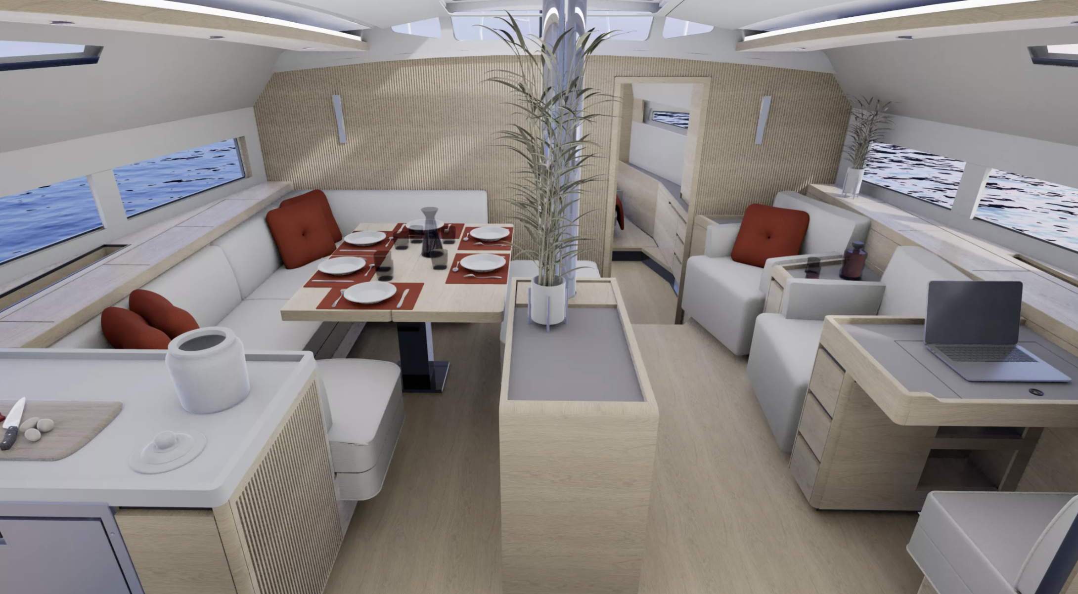 The saloon is so wide it is almost the size found on a cruising catamaran. With the giant hull windows, again, you almost feel like you are in a cat.