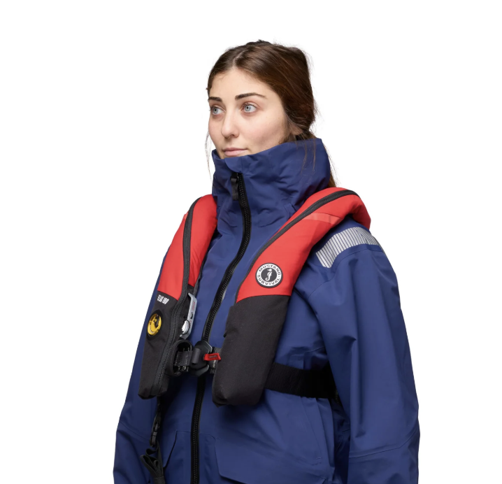 The new design has attachment points for a whistle, an AIS personal locator beacon, and a SOLAS approved light. The inflation device uses Hammar technology that reduces the chance of an accidental inflation when dowsed with spray of in a rain storm.