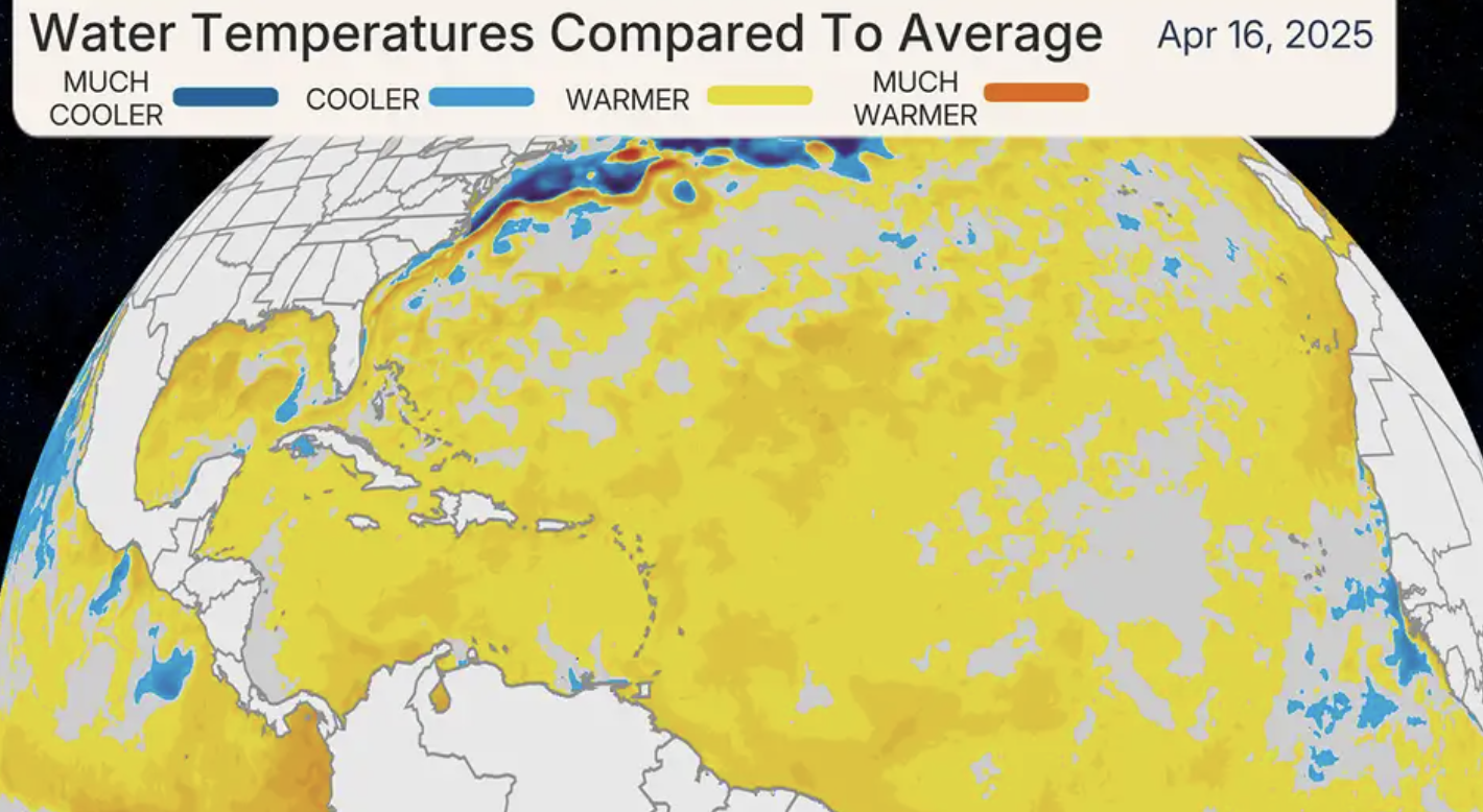 But hot ocean temperatures are still very much the story and will have significant influences in both oceans and on both coasts. In the tropics, particularly in the waters east of the Cape Verde Islands of Africa, sea water temperatures are near record levels, although not as hot as 2024. This augers the early formation of tropical storms and boosts their intensity.