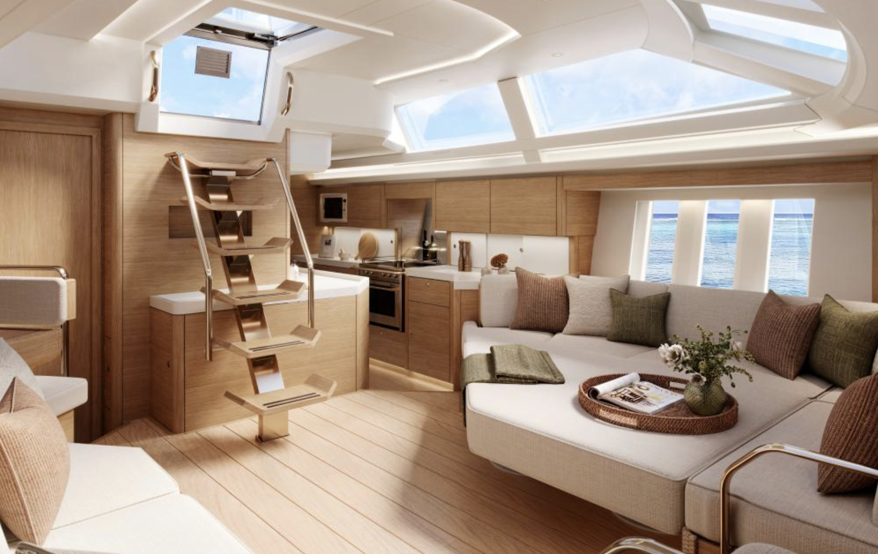 Down below, several plans are offered, and owners can make custom modifications within the limits of the overall structure. The centerpiece will be the spacious saloon which has almost eight feet of headroom and is filled with natural light.